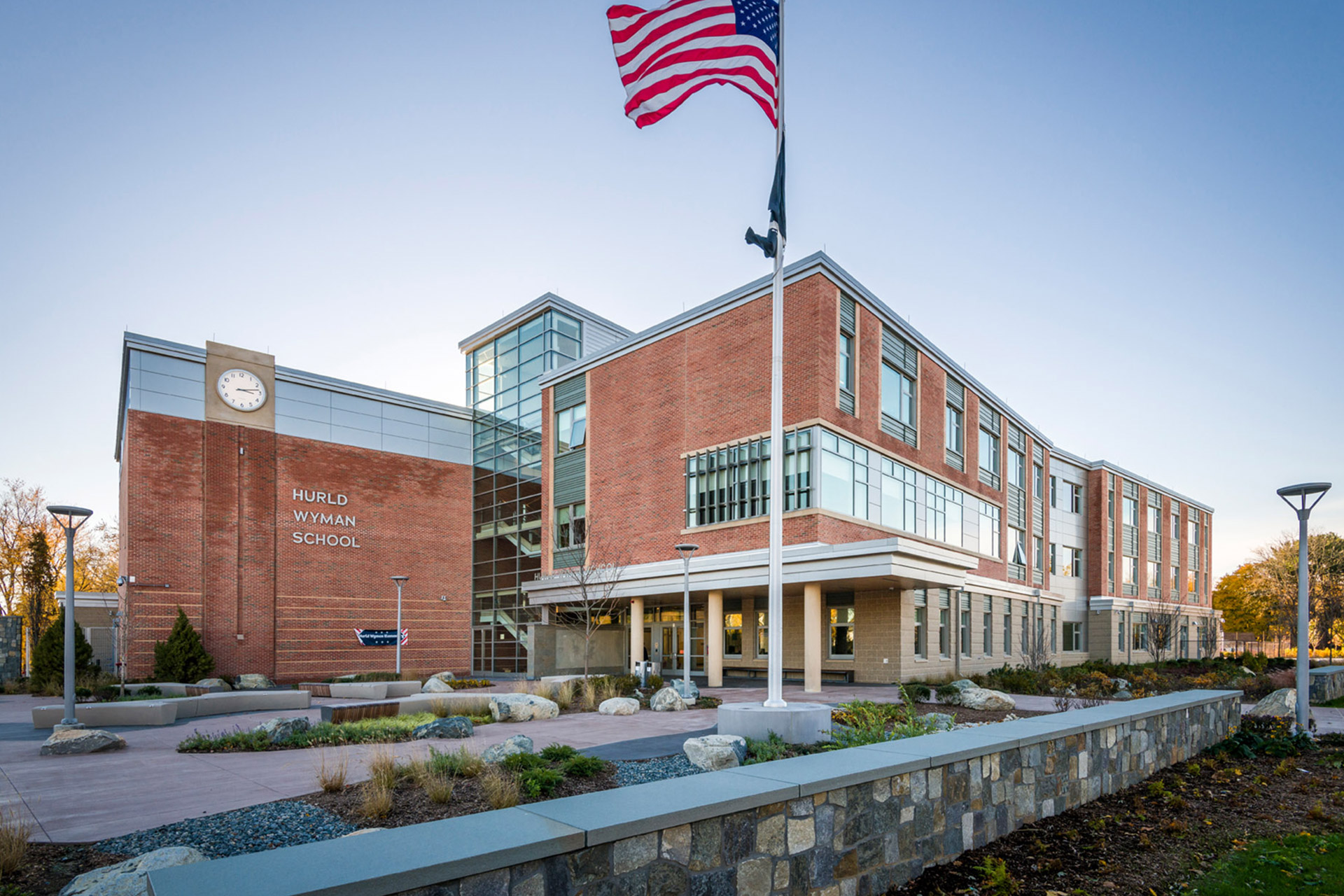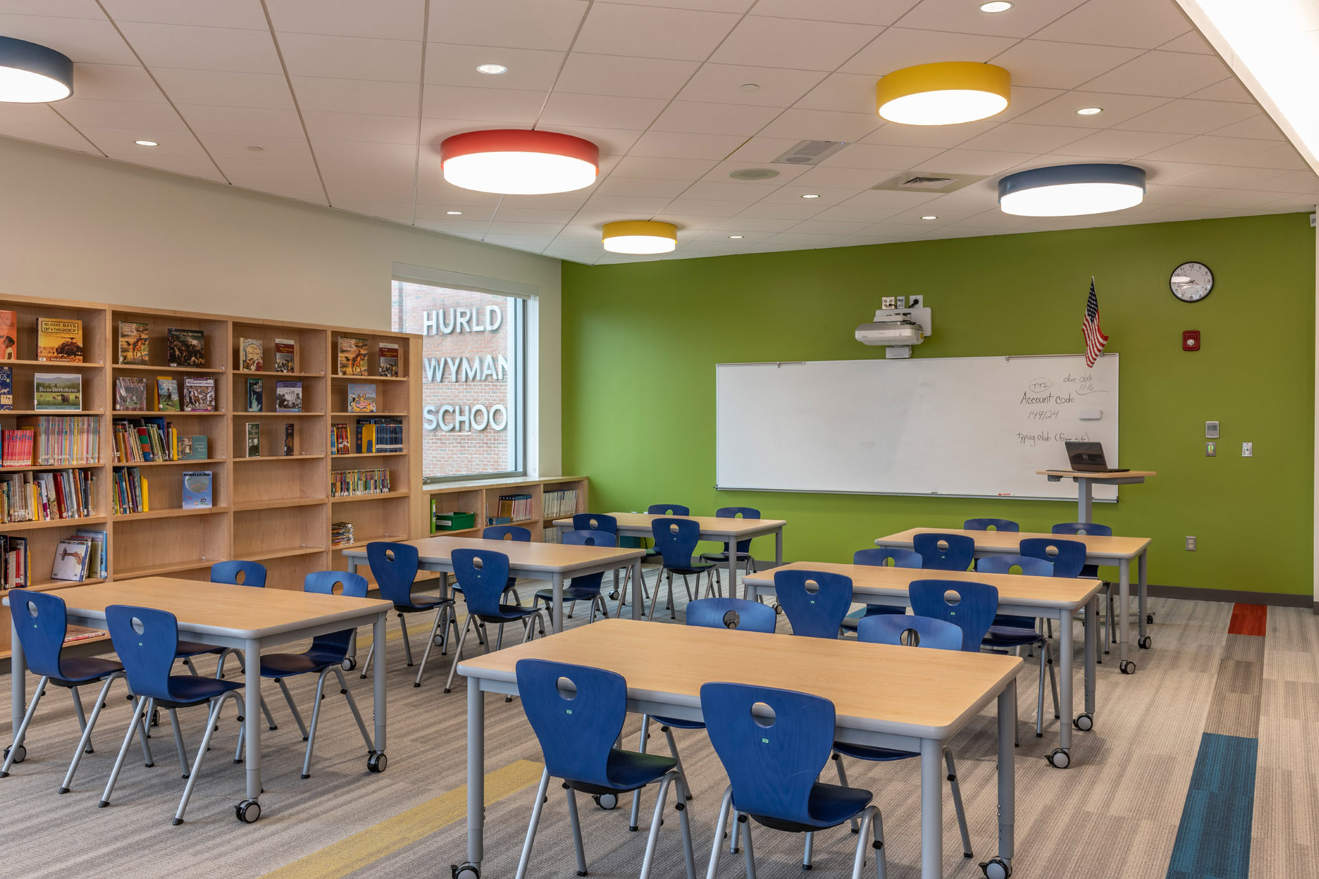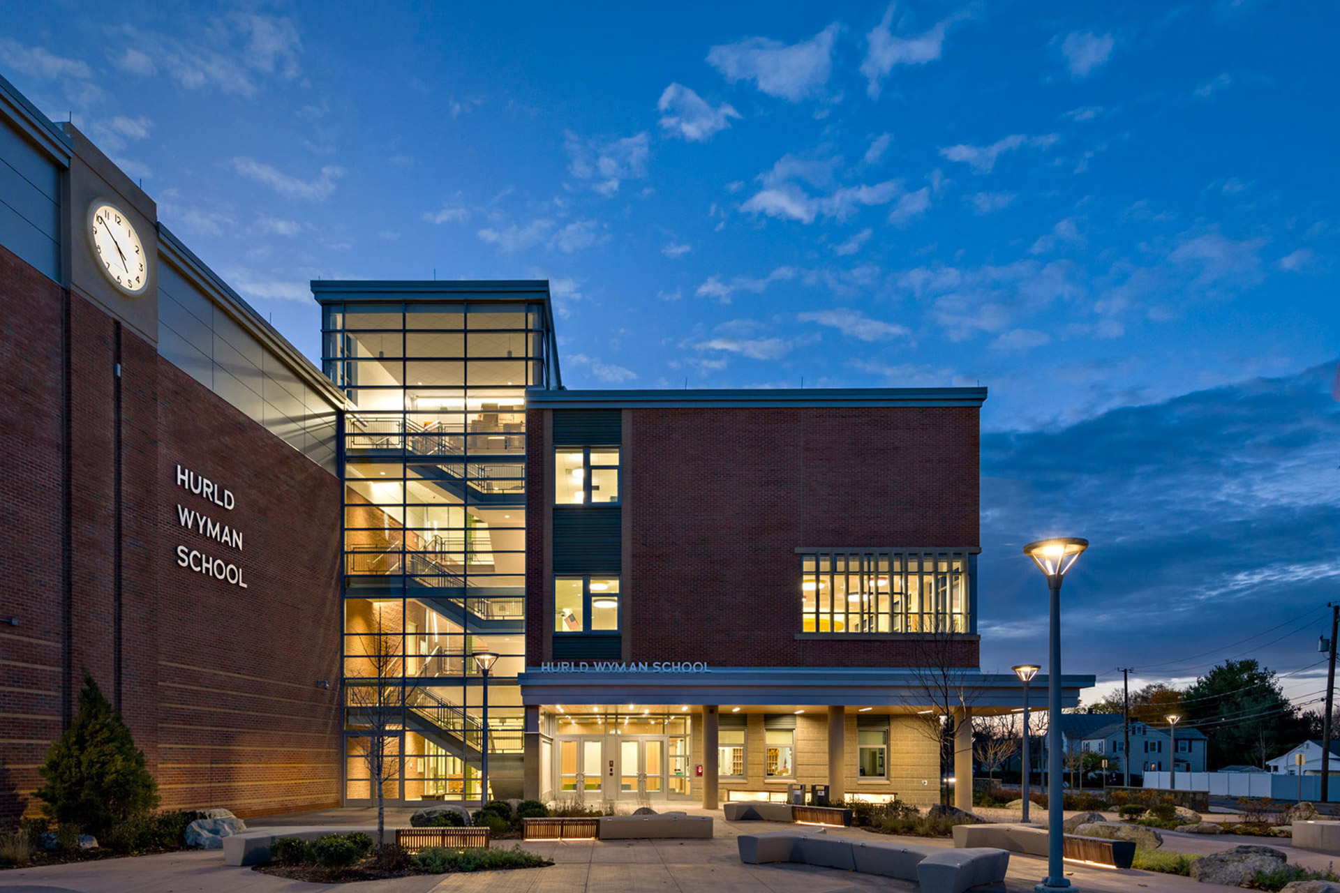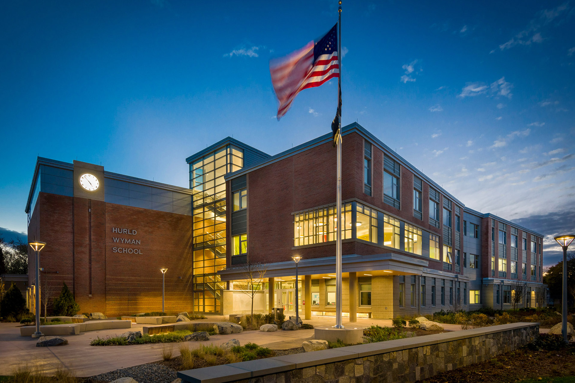 The Hurld Wyman School resulted from consolidating two outdated smaller schools into one new elementary school as part of the city’s educational masterplan. The project team collaborated with multiple agencies and committees to evaluate four possible locations for the new school, developing a full range of site alternatives, evaluation criteria, and design options for new construction on each of these sites from which the city made its final selection.